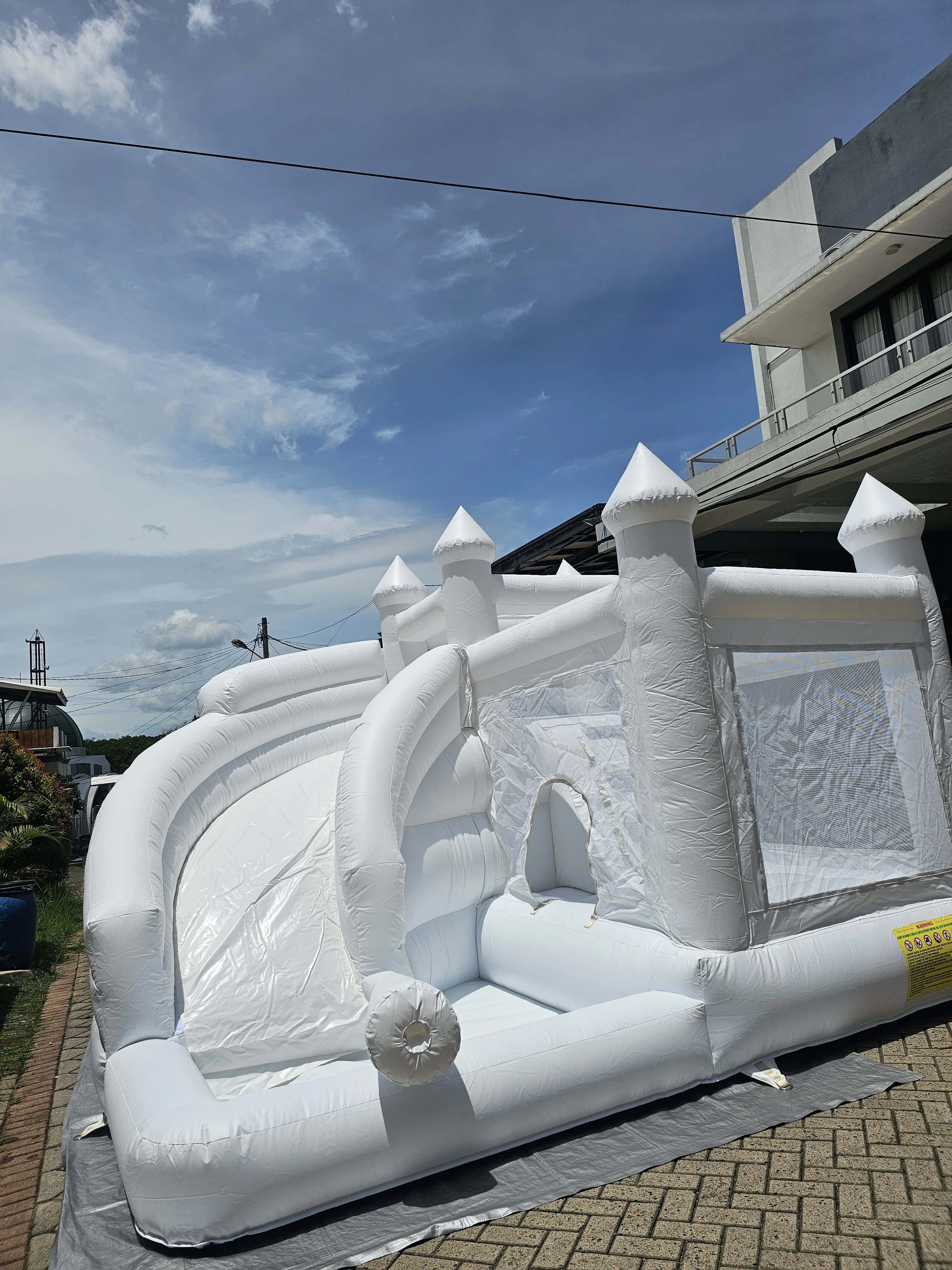 Combo de tobogán inflable azul claro para niños, juego al aire libre, trampolín para saltar, Parque Acuático divertido
