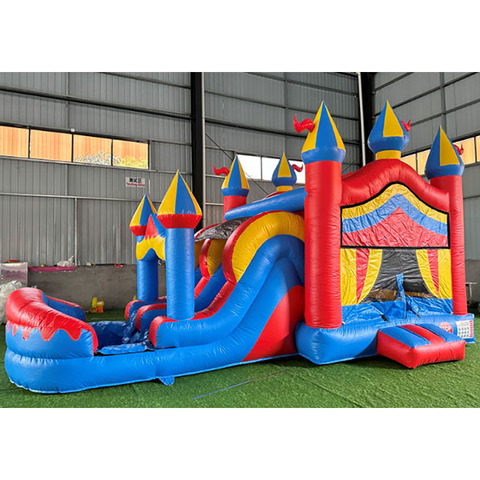 Combo gonflable commercial de videur de glissière d'eau des enfants de château plein d'entrain avec la maison de saut d'accessoire de ventilateur pour le jeu extérieur